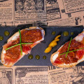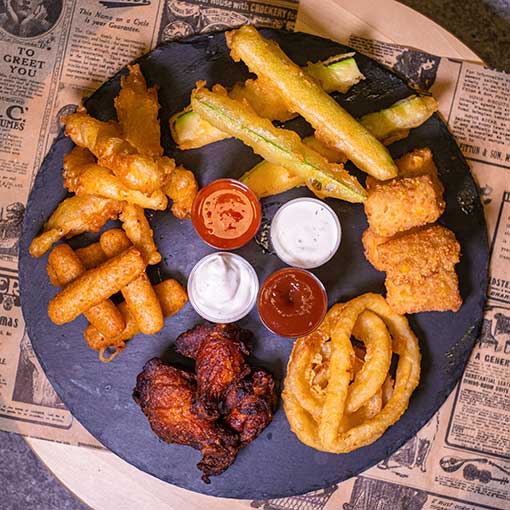 Salsa guacamole, bacon crujiente, cebolla roja, salsa mexicana, tomate fresco